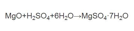在中和罐中先将菱苦土慢慢加入水和母液中,然后用硫酸中和,颜色由土色变为红色为止,控制pH=5,相对密度1.37~1.38(39~40°Bé)。在80℃下过滤中和液,然后用硫酸调节pH值至4,加入适量的晶种,并冷却至30℃结晶。分离后在50~55℃下干燥得成品,母液返回中和罐。也可用低浓度的硫酸与氧化镁含量65%的苦土中和反应,经过滤、沉淀、浓缩、结晶、离心分离、干燥,制得七水硫酸镁。
